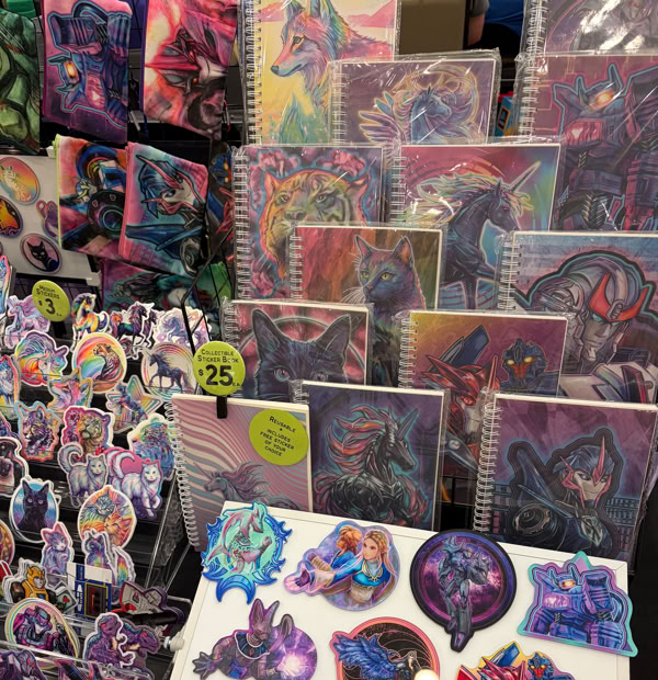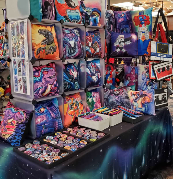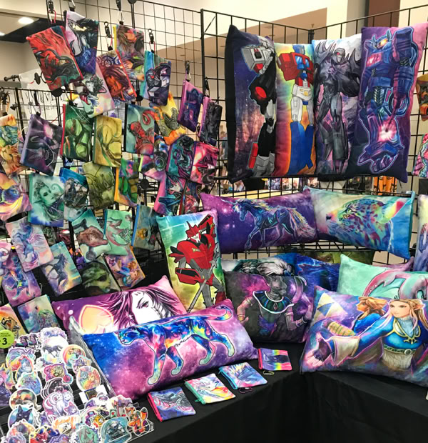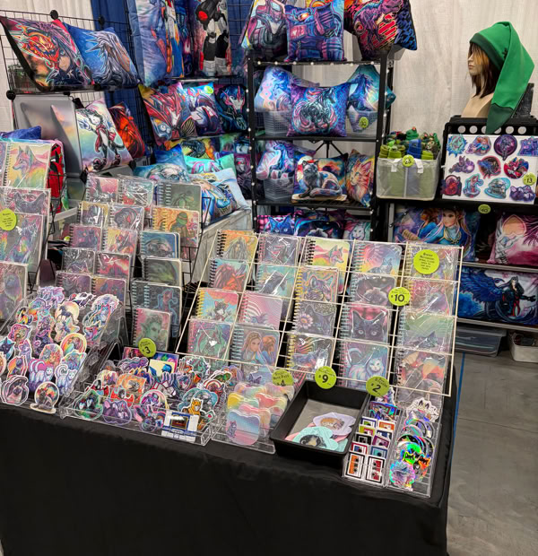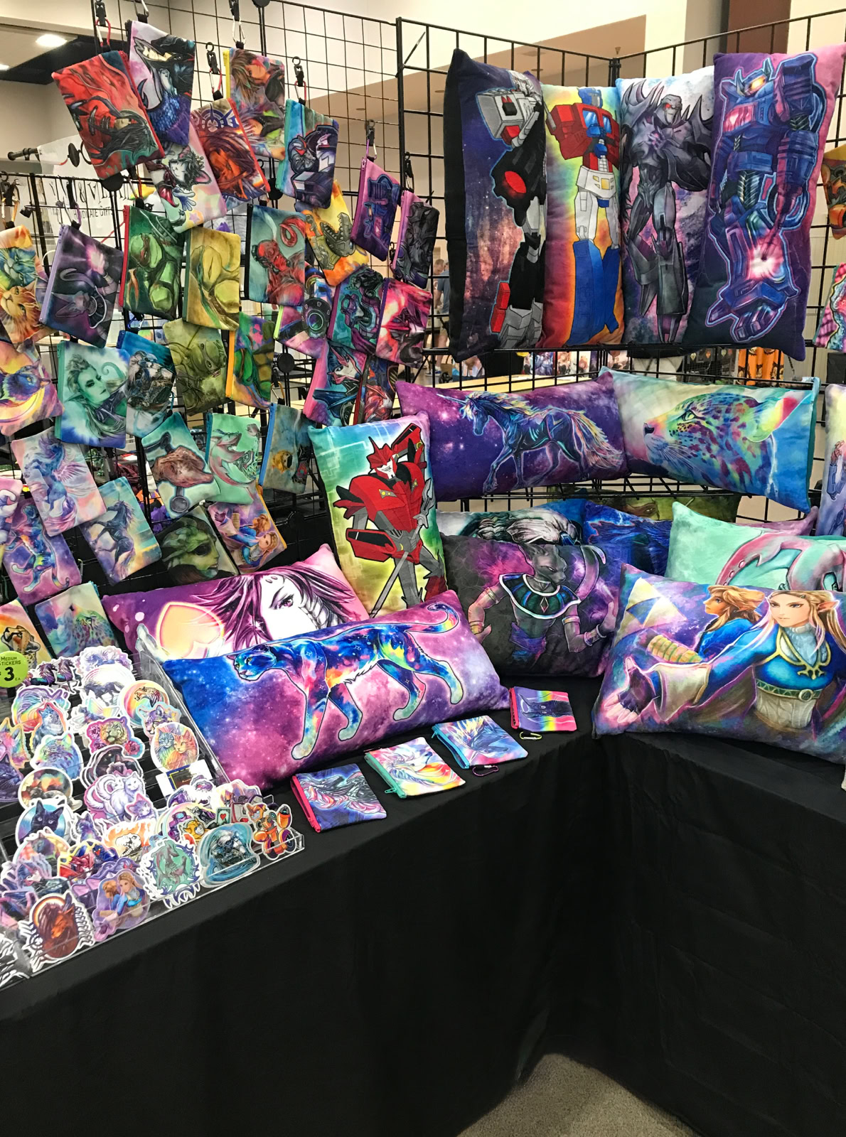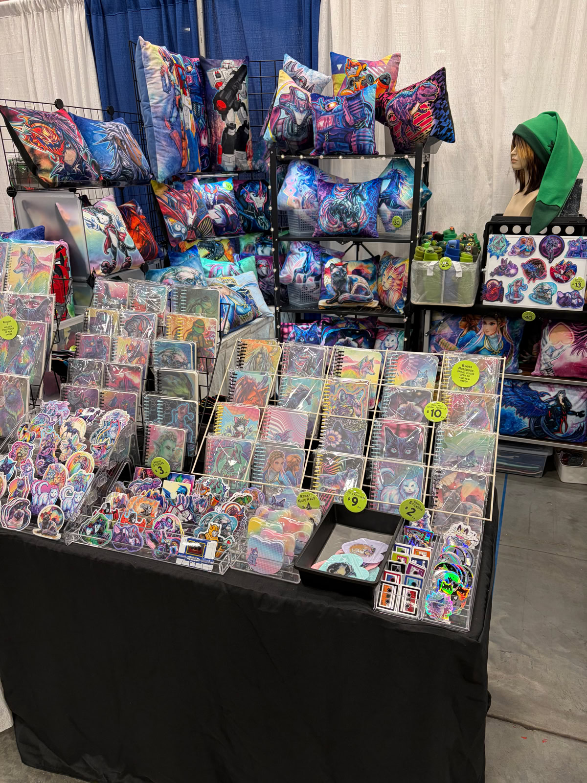 Most of the art in these shots are my pieces, but for shared booths (as NoBoStudios) some seen here may also be Sae’s or Dirge’s works.